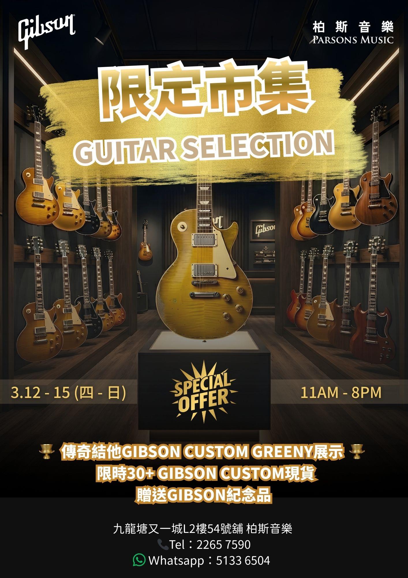 柏斯音樂隆重宣佈,將於 3 月 12 日至 15 日 在又一城分店舉行 【限定市集 Gibson Guitar Selection】。今次活動規模空前,不僅有傳奇級結他限時現身,更有大量頂級現貨以驚喜價發售,絕對是各位收藏家與樂手夢寐以求的機會。